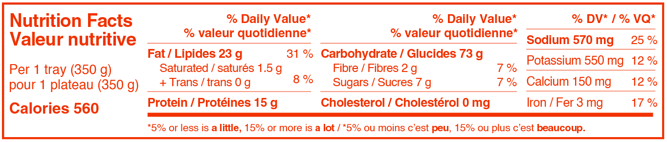 Rice (Water, Rice, Canola Oil, Annatto, Spices, Saffron), Chicken, Onion, Yogurt (Skim Milk, Pectin, Bacterial Culture), Crushed Tomato, Canola Oil, Garlic, Ginger, Salt, Spices, Paprika [flavor], Turmeric [flavor].